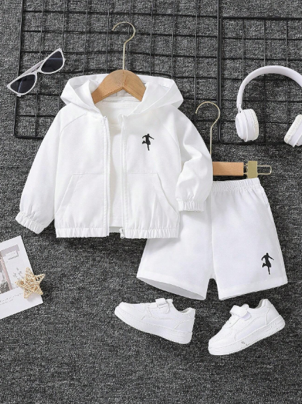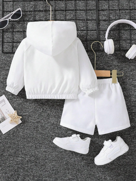 Composé d’une veste à capuche avec fermeture éclair et d’un short uni assorti, cet ensemble est parfait pour les journées actives et les sorties en extérieur.