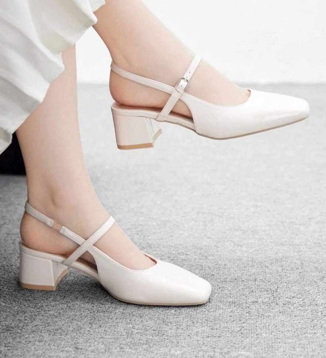 Escarpins Femme Beige à Bride Croisée – Talon Carré Confort Élégant