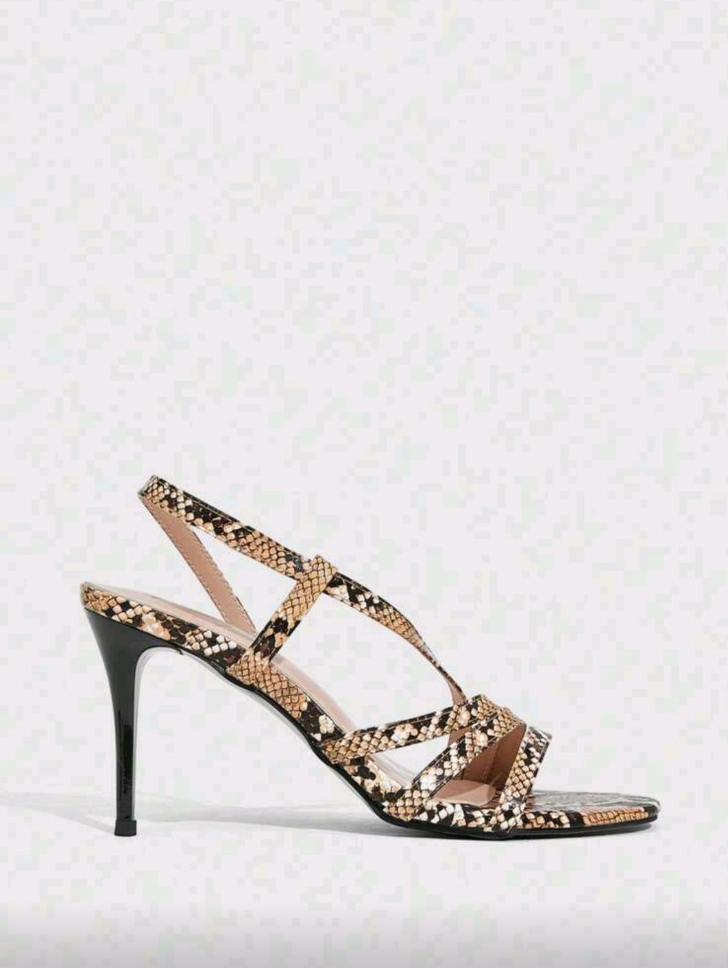 Ajoutez une touche audacieuse à votre tenue avec ces sandales à talon stiletto imprimé serpent 🐍. Leur design à lanières et bride arrière (slingback) assure confort et maintien tout en restant ultra chic.